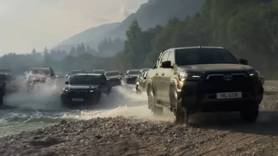 Το βίντεο της Toyota έδειχνε δεκάδες Hilux να κινούνται εκτός δρόμου, συμπεριλαμβανομένου ενός ποταμού, ενώ μια φωνή περιέγραφε τη σκηνή ως «ένα από τα μοναδικά θεάματα που μπορεί κανείς να βιώσει στη φύση».