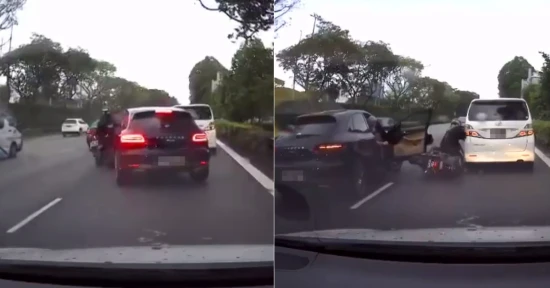 Το περιστατικό σημειώθηκε στη Σιγκαπούρη (για αυτό και η Macan είναι δεξιοτίμονη) και δεν άργησε να γίνει viral! Άλλωστε, δεν είναι και συνηθισμένο να σημειώνονται δύο διαφορετικά τρακαρίσματα μέσα σε 12 δευτερόλεπτα, από τον ίδιο οδηγό. Το ποιος φταίει τελικά δεν είμαστε σε θέση να το γνωρίζουμε, καθώς αυτό εξαρτάται από το αν επιτρέπεται ή όχι η διήθηση των μοτοσυκλετών στη Σιγκαπούρη. Πάντως, ένα είναι το σίγουρο: ο οδηγός της Porsche μάλλον δεν είναι και τόσο… προσεκτικός.