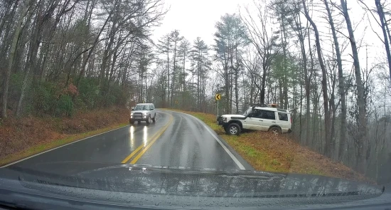 Το μεγάλο SUV γλίστρησε στη στροφή λόγω της βροχής και βρέθηκε ένα βήμα πριν την πτώση στον γκρεμό.