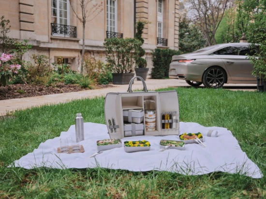 Το χειροποίητο κουτί πολυτελείας σχεδιάζεται και παράγεται από τη La Malle Bernard στη Γαλλία και μπορεί να μεταφέρει ένα πλήρες σετ γεύματος για 4 άτομα…