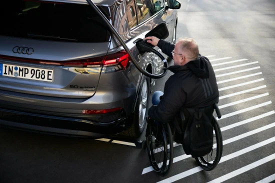 Επιπλέον, όλοι οι κόμβοι φόρτισης της Audi είναι σχεδιασμένοι έτσι ώστε να μην δημιουργούν εμπόδια: ένας περιστρεφόμενος βραχίονας, για τον οποίο έχει κατοχυρωθεί δίπλωμα ευρεσιτεχνίας, οι οθόνες ρυθμιζόμενου ύψους και ο άφθονος χώρος για ελιγμούς - για παράδειγμα, ενός αναπηρικού αμαξιδίου - καθιστούν τη φόρτιση εύκολη για όλους, συμπεριλαμβανομένων των ατόμων με ειδικές ανάγκες.