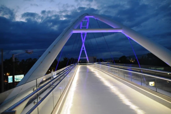 Οι γέφυρες αυτές είναι ιδιαίτερα απαιτητικά τεχνικά έργα. Αποτελούνται από τα δύο ακρόβαθρα, τις προσβάσεις των πεζών και τον χαλύβδινο φορέα, με τοξωτή μορφή, ο οποίος, στη συγκεκριμένη γέφυρα, έχει άνοιγμα 57 μέτρων. Το βάρος της γέφυρα στη Λ. Αθηνών ανέρχεται στους 100 τόνους και το κόστος ανέρχεται στο 1 εκατ. ευρώ, περίπου.