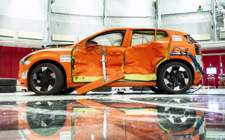 Η Volvo όχι απλά δεν δίστασε, αλλά επεδίωξε να δοκιμάσει την ασφάλεια των αυτοκινήτων της και δεν είχε κανέναν ενδοιασμό να καλέσει δημοσιογράφους στο Κέντρο Ασφάλειας της εταιρείας στην Torslanda της Σουηδίας προκειμένου να παρακολουθήσουν το… σούβλισμα του νέου ηλεκτρικού EX30 από το μεγάλο αδελφάκι του, το πελώριο EX90!