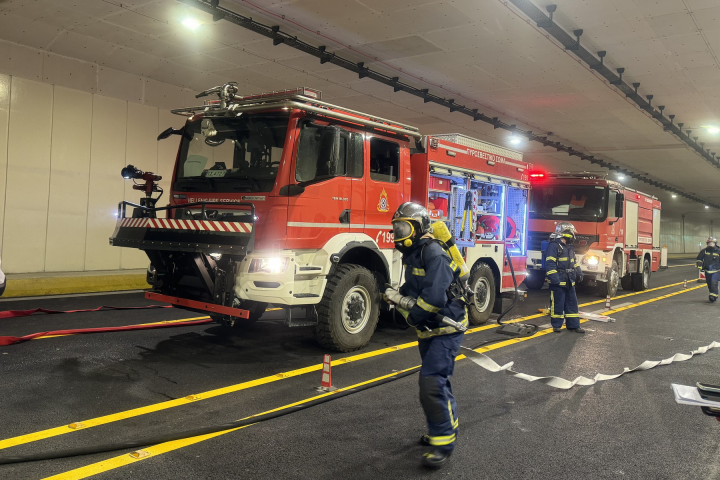 Το δεύτερο Πυροσβεστικό φθάνει ελάχιστα λεπτά αργότερα και ακολουθεί το τρίτο. Η Αστυνομία, διακόπτει την κυκλοφορία και από τις δύο εισόδους/εξόδους και ανοίγει τον δρόμο στα ασθενοφόρα που πλησιάζουν, ενώ μια ομάδα πυροσβεστών ελέγχει κάθε άλλο όχημα που έχει εγκλωβιστεί μέσα στη σήραγγα για τυχόν επιβάτες.
