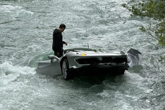 Το πανάκριβο supercar κατέληξε στα ορμητικά νερά του ποταμού Simme, με τον οδηγό, ευτυχώς να βγαίνει σώος και αβλαβής έπειτα από περίπου 40 λεπτά.