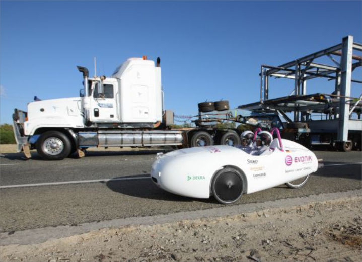 Το ανοιχτό διθέσιο αυτοκίνητο έχει ρόδες ποδηλάτου και κινείται κυρίως από μία μπαταρία ιόντων λιθίου 8 kW που φορτίζεται το βράδυ, είτε από μια αεροτουρμπίνα είτε μέσω του ηλεκτρικού δικτύου. Ζυγίζει περίπου 80 κιλά χωρίς τη μπαταρία και 200 κιλά συνολικά, ενώ μπορεί να αναπτύξει ταχύτητα 80 km/h. Το ηλεκτρικό ρεύμα που χρειάστηκαν οι Gion και Simmerer για το ταξίδι κόστισε συνολικά περίπου 11 ευρώ! Ο Gion παραδέχτηκε πως το όχημα δεν είναι ακόμη έτοιμο για κανονική χρήση, ωστόσο τόνισε πως έχει μεγάλες προοπτικές για μια green αυτοκίνηση στο μέλλον.