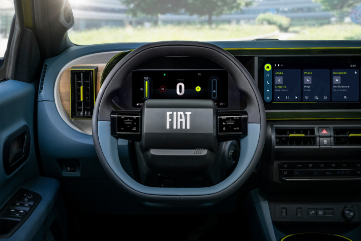To ταμπλό με τις κίτρινες λεπτομέρειες και το πανέξυπνο σχήμα της οβάλ πίστας του Lingotto, κλέβει τις εντυπώσεις, όπως και το ξεχωριστό τιμόνι. Ο ψηφιακός πίνακας οργάνων έχει διαγώνιο 10 ίντσες και η κεντρική οθόνη που φιλοξενεί το σύστημα πολυμέσων 10,25΄΄. Φυσικά, δεν λείπουν οι θύρες φόρτισης και οι θήκες για την τοποθέτηση κινητών τηλεφώνων και άλλων αντικειμένων.