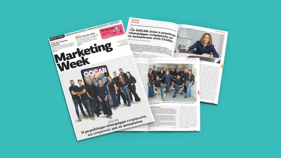 Αφιερωμένο στο GOCAR, στο μεγαλύτερο οικοσύστημα ψηφιακών Μέσων αποκλειστικά για το χώρο του αυτοκινήτου και της κινητικότητας, είναι το cover story του τελευταίου τεύχους (ΤEYXOΣ Νο.1692) του περιοδικού Marketing Week. Αναδεικνύοντας την επιτυχημένη διαδρομή του αυτά τα 15 χρόνια που δραστηριοποιείται και αναπτύσσεται συνεχώς στην αγορά του αυτοκινήτου στην Ελλάδα.