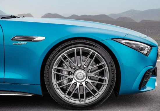 Σε ότι αφορά τώρα το δίλιτρο τετρακύλινδρο μοτέρ της Mercedes-AMG SL 43 αποτελεί μια νέα εκδοχή του 2λιτρου 4κύλινδρου Μ139 της Mercedes-AMG και εφοδιάζεται με ηλεκτρικό υπερσυμπιεστή καυσαερίων. Το ηλεκτρικό τούρμπο της SL 43 αποτελεί μέρος του ήπια υβριδικού συστήματος δεύτερης γενιάς της Mercedes και αποδίδει όπως προαναφέραμε 382 ίππους στις 6.750 rpm και 480 Nm από τις 3.250 έως τις 5.000 rpm, ενώ για μικρό διάστημα το ήπια υβριδικό σύστημα των 48V προσθέτει άλλους 14 ίππους. Συνδυάζεται με αυτόματο κιβώτιο εννέα σχέσεων και η κίνηση φτάνει αποκλειστικά τους πίσω τροχούς. Σύμφωνα με την Mercedes-AMG, η SL 43 χρειάζεται 4,9’’ για το 0-100 km/h με την τελική ταχύτητα του μοντέλου να περιορίζεται ηλεκτρονικά στα 275 km/h.