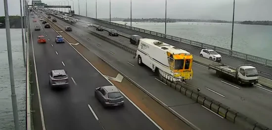 Το όχημα, γνωστό και «φερμουάρ» κινείται πάνω στη γέφυρα εν μέσω έντονης κίνησης, μαζεύοντας τους τσιμεντόλιθους από τη μία πλευρά και τοποθετώντας τους σε μια άλλη, προσαρμόζοντας το πλάτος στις λωρίδες κυκλοφορίας.