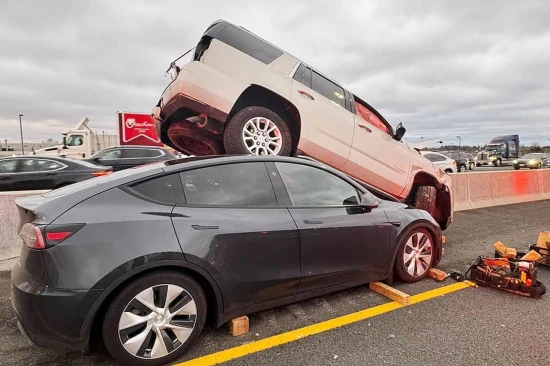 SUV της Chevrolet σκαρφάλωσε στο Model Y – Άθικτη η οροφή