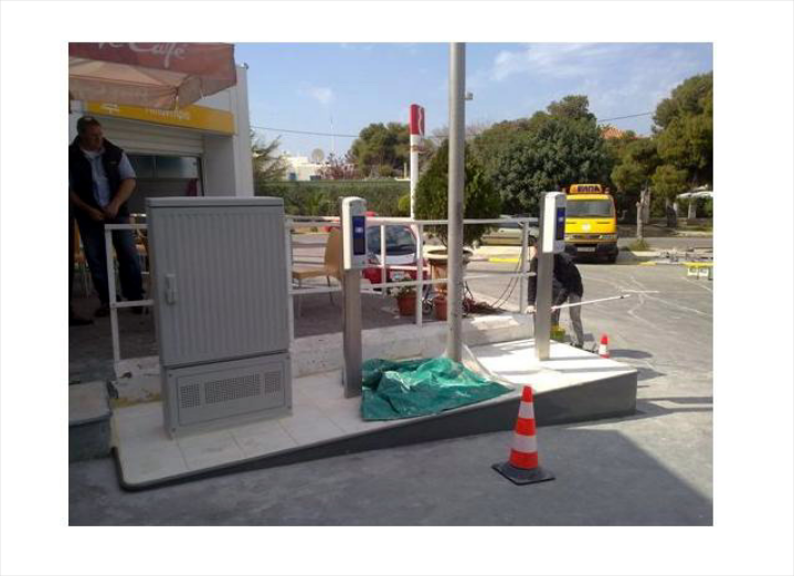 Ο εξοπλισμός και η απαραίτητη υποδομή έγινε σε συνεργασία της ΕΚΟ με την ELPEDISON, ενώ το Ελληνικό Ινστιτούτο Ηλεκτρικών Οχημάτων (ΕΛ.ΙΝ.Η.Ο) ενήργησε ως τεχνικός σύμβουλος καθορισμού των προδιαγραφών και επιλογής του εξοπλισμού. Οι 3 σταθμοί φόρτισης διαθέτουν ρευματολήπτες τύπου «Σούκο» για εντάσεις ρεύματος φόρτισης μέχρι 16 Αμπέρ και τύπου «ΟΕΜ» για μέχρι 32 Αμπέρ και πληρούν όλες τις τελευταίες προδιαγραφές για τη φόρτιση ηλεκτρικών οχημάτων. Διαθέτουν επίσης όλο τον αναγκαίο εξοπλισμό για την ελεγχόμενη μέσω μαγνητικών καρτών πρόσβαση και την καταμέτρηση των στοιχείων οχήματος και κατανάλωσης με διαθεσιμότητα τόσο τοπική όσο και μελλοντικώς σε επίπεδο δικτύου πόλης με κεντρικό έλεγχο.