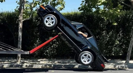 Για την ακρίβεια, η μαύρη Porsche Ruf CTR, η μία παρεμπιπτόντως από τις 30 που κατασκευάστηκαν συνολικά, βρέθηκε αίφνης να ακουμπά κάθετα στο δρόμο, κοιτώντας… τον ουρανό! Σύμφωνα με τις πρώτες πληροφορίες, ο οδηγός της μεταφορικής έφθασε στο σπίτι του ιδιοκτήτη και αφού στάθμευσε ξεκίνησε να γέρνει τη ράμπα που φιλοξενούσε τη μαύρη Ruf CTR. Έλα όμως που όπως αποδείχθηκε είχε παραλείψει μια πολύ σημαντική λεπτομέρεια: Δεν είχε τραβήξει χειρόφρενο στο όχημα, με αποτέλεσμα μόλις αυτό πήρε μια εύλογη κλίση να αρχίσει να κατρακυλά! Το τι μέλλει γενέσθαι και ποιος θα καλύψει το κόστος της ζημιάς παραμένει ακόμα άγνωστο.