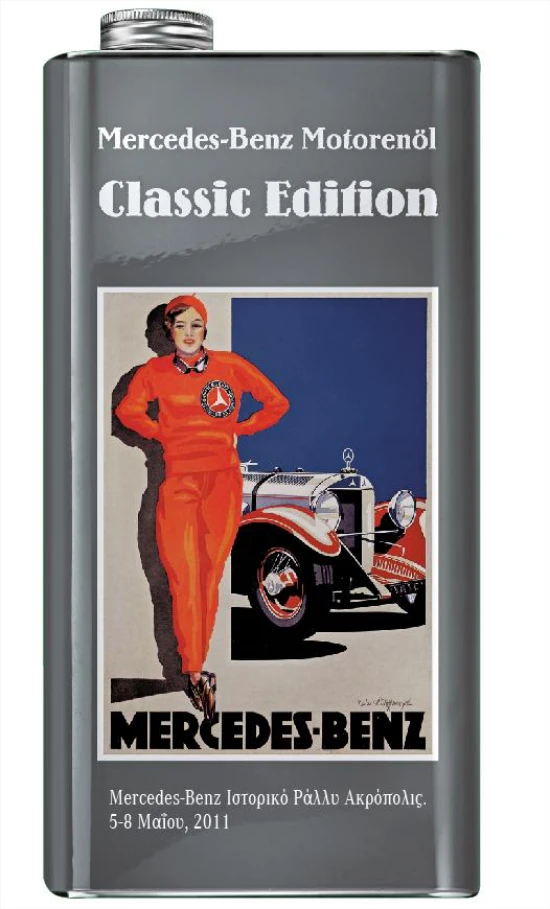 Η Mercedes-Benz είναι από τις λίγες εταιρείες που βρίσκεται τόσο κοντά στο χώρου του ιστορικού αυτοκινήτου αφού εξέλιξε λάδι με ειδική σύνθεση για τις ανάγκες των παλιών και ευαίσθητων κινητήρων. Όλη η συσσωρευμένη γνώση των 125 χρόνων ζωής της Mercedes-Benz είναι τοποθετημένη συμβολικά σε ένα μεταλλικό δοχείο από άλλη εποχή που μπορεί κάνει τους κινητήρες πιο ζωντανούς από ποτέ.