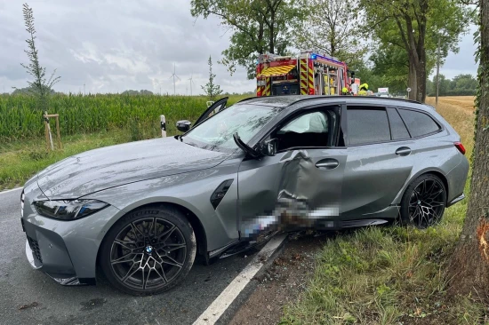 Όπως ανέφερε η αστυνομία του Coesfeld στη Γερμανία, ο οδηγός δεν μπόρεσε να συγκρατήσει το πανίσχυρο αυτοκίνητο, αυτό γλίστρησε και προσέκρουσε με το πλάι σε δέντρο. Όπως φαίνεται και από τη φωτογραφία, το χτύπημα έγινε ακριβώς πάνω στην πόρτα του οδηγού. Ο 21χρονος τραυματίστηκε και μεταφέρθηκε στο νοσοκομείο.