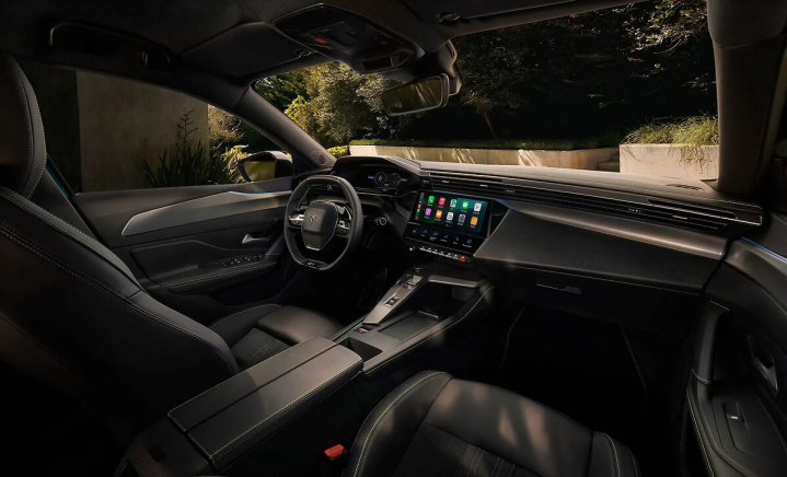 Στο εσωτερικό, η λογική ακολουθεί τη νεότερη σχεδιαστική φιλοσοφία που είδαμε στο 3008. Καθαρές και αρμονικές γραμμές ενσωματώνουν άψογα τον πίνακα οργάνων, την κεντρική οθόνη αφής 10'' και τους φυσικούς διακόπτες. Όλες οι εκδόσεις διαθέτουν ψηφιακό πίνακα οργάνων στο βασικό εξοπλισμό, με νέα 3D γραφικά (έκδοση GT), ενώ δεν λείπουν και οι πρακτικές συντομεύσεις i-Toggles. Επιπλέον, νέος είναι και ο ατμοσφαιρικός φωτισμός με επιλογές οκτώ χρωμάτων. Ο χώρος αποσκευών για την υβριδική έκδοση είναι 412 lt, ενώ αυτός της plug-in hybrid περιορίζεται στα 314 lt. Την ίδια ώρα, το Ε-308 προσφέρει 361 lt, όταν στην SW εκδοχή ο όγκος του κυμαίνεται από τα 598 lt έως τα 1.487 lt.