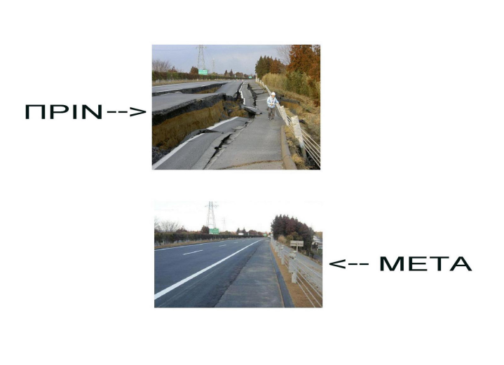 Η μεθοδικότητα, η εργατικότητα και η τεχνογνωσία των Ιαπώνων είναι γνωστές. Ο χρόνος ρεκόρ όμως που χρειάστηκαν για να επισκευάσουν τον - κατεστραμένο από τον σεισμό της 11ης Μαρτίου 2011 - αυτοκινητόδρομο Great Kanto στη Naka ξεπερνά κάθε προσδοκία: Μόλις 6 ημέρες χρειάστηκαν τα αρμόδια συνεργεία για την επιδόρθωση του τμήματος μήκους 150 m που, όπως βλέπετε και στις φωτογραφίες, κόπηκε σε τρία κομμάτια με έντονες ρηγματώσεις. Ο δρόμος έγινε καινούργιος και τίποτε δε θυμίζει την καταστροφή που υπέστη. Αλλά, φυσικά, το γεγονός αυτό δεν λέει τίποτα για εμάς τους Έλληνες που διακρινόμαστε για την ταχύτητα και την ποιότητα με την οποία κατασκευάζουμε και επιδιορθώνουμε δρόμους…