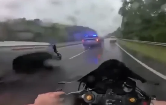 Φυσικά, το να επιχειρήσεις να αποφύγεις την αστυνομία σε τυχόν έλεγχο μόνο νόμιμο δεν είναι. Αλλά το να το κάνεις ενώ οδηγείς μοτοσικλέτα υπό καταρρακτώδη βροχή, μπορεί να αποβεί καταστροφικό.