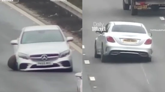 Ο 20χρονος οδηγός της ασημί Mercedes κινούνταν με τρεις τροχούς στον αυτοκινητόδρομο, θέτοντας σε κίνδυνο την ασφάλεια των υπόλοιπων χρηστών του οδικού δικτύου. Όταν τον συνέλαβε η αστυνομία, κατάλαβε περί τίνος πρόκειται.