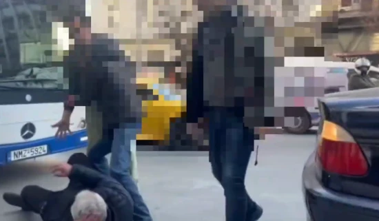 Όπως φαίνεται στο video, οι τρεις άνδρες τραβάνε έναν ηλικιωμένο και τον πετάνε με δύναμη στην άσφαλτο. Ο ένας από αυτούς τον βρίζει με ακατανόμαστες εκφράσεις και του ζητάει να φύγει.