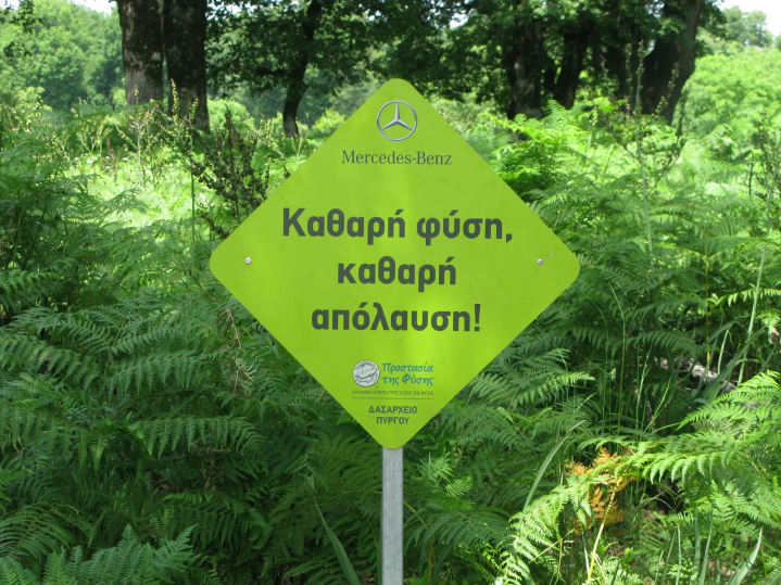 Η διάδοση των μηνυμάτων προστασίας του μοναδικής αισθητικής, πολιτιστικής και οικολογικής αξίας δρυοδάσους της Φολόης, επιτυγχάνεται πλέον και μέσω των ενημερωτικών και προτρεπτικών πινακίδων που τοποθετήθηκαν, παρουσία των εκπροσώπων της Mercedes-Benz Ελλάς Α.Ε.Ε.