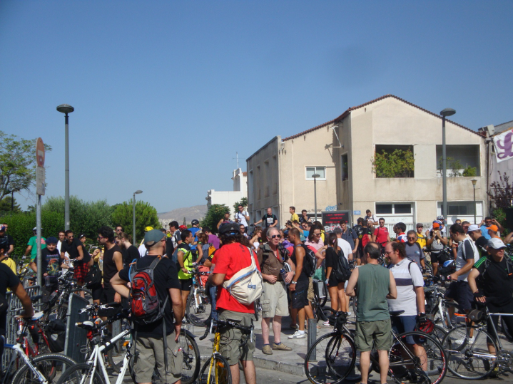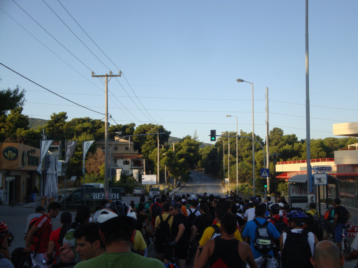 20 λεπτά αφού φτάσαμε στην πλατεία, ένας από τους οδηγούς ανέφερε ότι πρέπει να ξεκινήσουμε. Κανείς δεν χάρηκε στο άκουσμα, αλλά έπρεπε. Είχε ήδη αρχίσει να φαίνεται το φως του ήλιου και μόλις συνειδοτοποίησαμε ότι η νύχτα έφυγε ποδηλατώντας, η διάθεση ανέβηκε. Βοήθησε και η κατηφόρα που είχαμε μπροστά μας. Next stop, Αγία Παρασκευή, με τη σκέψη ότι είμαστε ψηλά και θα αρχίσουμε να κατεβαίνουμε. Έλα όμως που η διαδρομή περνούσε από Άνοιξη πρώτα… Η κούραση είχε αρχίσει να φαίνεται, αφού η ταχύτητα από τα 15 km/h μειώθηκε στα 10 με 11 στις ανηφόρες. Ευτυχώς δεν κράτησε πολύ και ξεκίνησε η κατάβαση στην Κηφισιά όπου δεν έλειψαν τα απρόοπτα (δες εδώ). Η αστυνομία μας συνόδευε κατά διαστήματα και βοηθούσε τη πομπή να παραμένει συγκεντρωμένη, ειδικά στο κατέβασμα στην Κηφισίας. Οπότε γύρω στις 08:30 το πρωί φτάσαμε στην τελευταία στάση πριν τον τερματισμό: πλατεία Αγίας Παρασκεύης. Ευτυχώς υπήρχαν καναπέδες από τα τριγύρω μαγαζιά και μπορέσαμε να κάτσουμε λίγο. Ένα κρουασάν σοκολότα και ένα μπουκαλάκι νερό προσέφεραν την απαραίτητη ενέργεια για να μπορέσω να συνεχίσω για το Θησείο. Το διάλειμμα δεν κράτησε πολύ αφού ήμασταν αρκετά κοντά στον τερματισμό και επιπλέον ο ήλιος είχε αρχίσει να χτυπάει τα ταλαιπωρημένα μας κορμιά. Κατεβήκαμε τη Μεσογείων, ανεβήκαμε την Κατεχάκη, περάσαμε από Ζωγράφου και Παγκράτι χαμηλά, ώστε να βγούμε Σύνταγμα και να ακολουθήσουμε το δρόμο για τον τερματισμό. Μια μικρή ανηφόρα που συναντήσαμε την ένιωθα σαν ευθεία, αφού είχα περάσει τα 120 km ποδηλατώντας και το μόνο που σκεφτόμουν ήταν ότι σε 5 λεπτά θα είμαι πίσω, εκεί από όπου ξεκίνησα πριν από 12 ώρες περίπου.