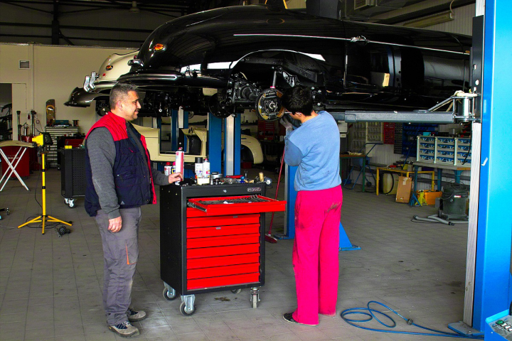 Και εδώ έστησε τη δουλειά που ήξερε, αρχικά τη φανοποιεία και μετά προχώρησε στις ανακατασκευές. Τα αυτοκίνητα έρχονταν και έρχονται ακόμα και σήμερα από το εξωτερικό και θα τα δείτε διάσπαρτα στις εγκαταστάσεις, σε διάφορες φάσεις ανακατασκευής.