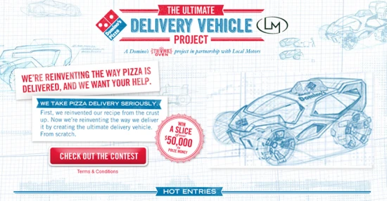 Η Domino’s Pizza και η εταιρεία Local Motors ξεκίνησαν πριν ένα μήνα ένα πρωτότυπο διαγωνισμό για το σχεδιασμό ενός νέου οχήματος προορισμένου για Pizza Delivery!