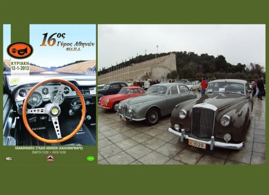 Η ΦΙΛΠΑ (Φίλοι του Παλαιού Αυτοκινήτου) διοργανώνει για 16η φορά την πρώτη πανηγυρική εκδήλωση Ιστορικών Οχημάτων (αυτοκίνητα, μοτοσυκλέτες & στρατιωτικά) της νέας χρονιάς. Η κλασική στατική εκδήλωση θα γίνει την Κυριακή 13 Ιανουαρίου 2013 στο Καλλιμάρμαρο Παναθηναϊκό Στάδιο, όπου από τις 09:00 το πρωί μέχρι τις 14:00 το μεσημέρι θα παραταχθούν αυτοκίνητα και μοτοσικλέτες κατασκευασμένα μέχρι και το τέλος του έτους 1975. Μετά το πέρας της εκδήλωσης, εθελοντικά για όσους από τους συμμετέχοντες επιθυμούν, θα πραγματοποιηθεί βόλτα μέχρι την παραλιακή της Βούλας, με τερματισμό στο Parking του Vive Mar για μεζέδες και κρασάκι. Μέρος του ποσού που θα συγκεντρωθεί από τις συμμετοχές θα διατεθεί σαν φιλανθρωπική ενίσχυση της ΦΙΛΠΑ προς το Κέντρο Ειδικών Ατόμων "ΧΑΡΑ". Περισσότερες πληροφορίες στη διοργανώτρια Λέσχη ΦΙΛΠΑ, οδός Κυβέλης 6, 153 44 Γέρακας, τηλ. 210 65 34 700., φαξ  210 6533420, email info@philpa.gr, καθώς και στις ιστοσελίδες: www.philpa.gr και www.facebook.com/Philpa.gr.