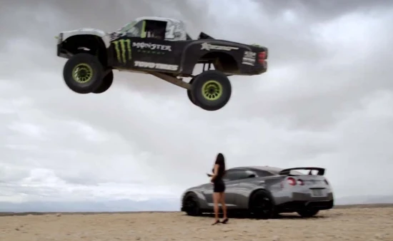 Trophy Truck σε ακροβατικά πάνω από Nissan GT-R!