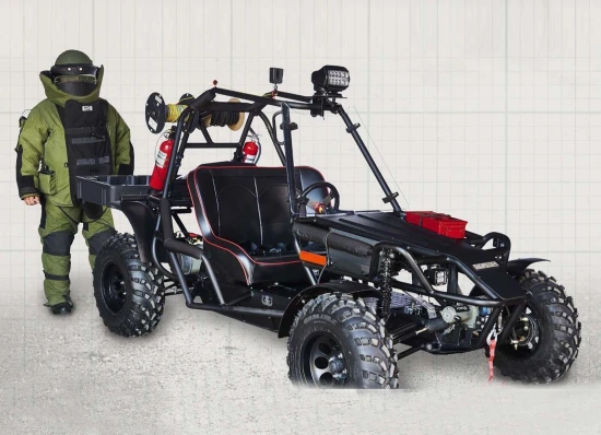 Το ειδικό ηλεκτρικό όχημα δεν έχει σκοπό να πραγματοποιεί… ταξίδια, ωστόσο βοηθάει την ομάδα των πυροτεχνουργών να καταφθάσουν άμεσα σε σχετικά κοντινή τοποθεσία, ώστε να περιοριστεί ο κίνδυνος. Το όχημα είναι εξοπλισμένο με όλα τα εργαλεία που χρειάζεται ο τεχνικός, ενώ διαθέτει τον ανάλογο χώρο για να οδηγεί άνετα με τη στολή του πυροτεχνουργού. Τέλος, το ηλεκτρικό μοντέλο μπορεί να λειτουργήσει και αυτόνομα και να… θυσιάσει τον εαυτό του, μεταφέροντας τον κίνδυνο κάπου μακριά για να μετριάσει τη ζημιά που μπορεί να προκύψει.