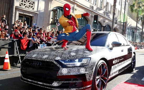 Με επιβάτη τον ηθοποιό Tom Holland έφθασε το καμουφλαρισμένο Audi A8 στη λεωφόρο του Hollywood, για την πρεμιέρα της νέας ταινίας Spider-Man: Homecoming. Ο Holland υποοδύεται τον Peter Parker, ο οποίος μεταμορφώνεται στον άνθρωπο-αράχνη για να πολεμήσει το «κακό».