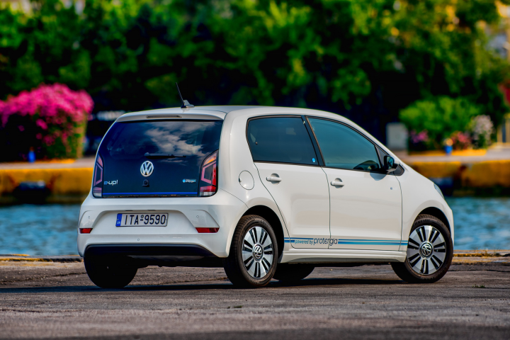 Το ηλεκτρικό e-up! κυκλοφορεί ήδη δύο χρόνια στην ελληνική αγορά. Για την κίνησή του χρησιμοποιεί έναν ηλεκτροκινητήρα με μέγιστη ισχύ 82 ίππους που είναι απολύτως επαρκής για ένα τετραθέσιο αυτοκίνητο πόλης, ενώ η ροπή των 210 Nm που αποδίδεται γραμμικά μέχρι τις 2800 rpm δίνουν σπιρτάδα και σε παρασύρει σε γενναίες βυθίσεις του δεξιού πεντάλ, έστω κι αν αυτές είναι εις βάρος της αυτονομίας. Οι μπαταρίες ιόντων λιθίου που φιλοξενούνται κάτω από το πίσω κάθισμα και στο πάτωμα του αυτοκινήτου ζυγίζουν 230 κιλά και διασφαλίζουν 160 χιλιόμετρα διαδρομής με μία φόρτιση, με τη μέση εκτιμώμενη να βρίσκεται πάνω από τα 120 χιλιόμετρα. Από πλευράς επιδόσεων, η τελική περιορίζεται στα 120 km/h όμως με 0-80 km/h σε χρόνο 8,1 sec σε συνδυασμό με την αθόρυβη λειτουργία κάνουν ιδιαίτερα συναρπαστική την οδήγηση που διαθέτει τρία οδηγικά προφίλ (normal, eco και eco+). Η πέδηση έχει πέντε επίπεδα ανάκτησης ενέργειας και με σχετική εξοικείωση βοηθούν τον οδηγό να φτάσει στη μέγιστη αυτονομία μειώνοντας τη σπατάλη του φρεναρίσματος.
