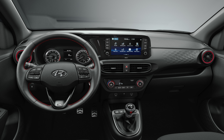 Ομόχρωμες πινελιές κοσμούν και το εσωτερικό και δη το δερμάτινο τιμόνι τύπου N Line, όπως επίσης τον επιλογέα ταχυτήτων, τα pedals και τα δακτυλίδια στους αεραγωγούς του κλιματισμού. Σημειώνεται πως οι ενδιαφερόμενοι μπορούν να επιλέξουν ανάμεσα σε έξι χρώματα, ενώ η οροφή διατίθεται σε δύο αποχρώσεις.