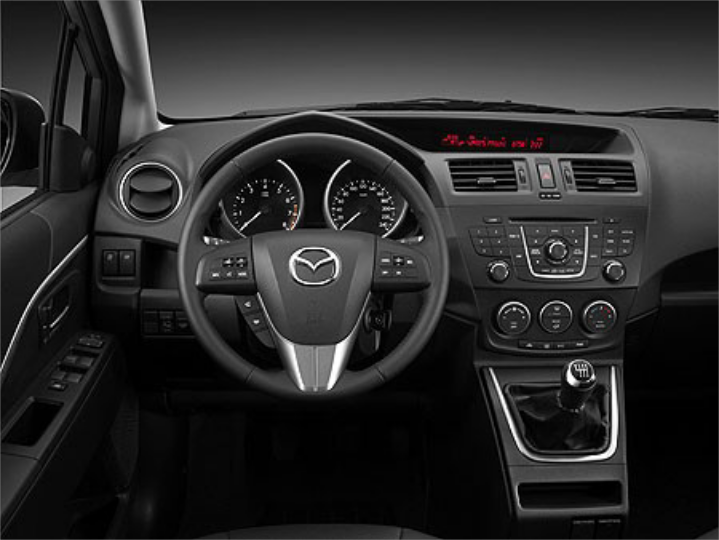 Με σημαντικές σχεδιαστικές αλλαγές κυρίως προς την συντηρητική κατεύθυνση και ένα εμπρός μέρος που μοιράζεται κοινά στοιχεία με το Mazda 3, παρουσιάζεται το ανανεωμένο Mazda 5. Η πλαϊνή όψη χαρακτηρίζεται από ιδιαίτερα σχεδιαστικά «νεύρα» και τις μεγάλες συρόμενες πίσω πόρτες, οι οποίες προσφέρουν πόντους στην πρακτικότητα, συμβαδίζοντας με την πολυμορφική λογική.