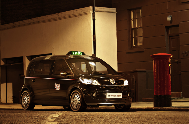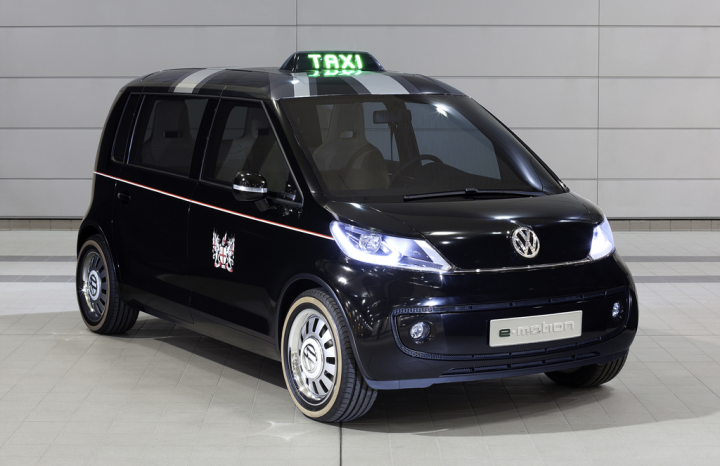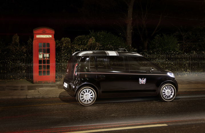 Η Volkswagen παρουσίασε την δική της πρόταση για το διάσημο London Taxi. Βασισμένο στο πάτωμα του Up!, το πρωτότυπο concept ταξί έχει μήκος 3,73 μέτρα, λίγο μικρότερο από το Fox και μπορεί να φιλοξενήσει δύο επιβάτες στο πίσω κάθισμα, ενώ υπάρχει και χώρος για αποσκευές. Η πρόταση δεν ακολουθεί ακριβώς τις απαιτήσεις που θέτουν οι Αγγλικοί κανόνες για τα χαρακτηριστικά ταξί του Λονδίνου, όμως παρουσιάζει την τάση που υπάρχει για τα αυτοκίνητα που θα εκτελούν μεταφορικό έργο στα αστικά κέντρα και θα πρέπει να είναι μηδενικών εκπομπών. Για τη σχεδίαση του VW London Taxi εργάστηκε προσωπικά ο Klaus Bischoff επικεφαλής του σχεδιαστικού τμήματος της εταιρείας. Στο πρωτότυπο έχει τοποθετηθεί μία συστοιχία μπαταριών ιόντων λιθίου με χωρητικότητα 45kWh και ένας ηλεκτροκινητήρας με απόδοσης 115 ίππους. Το πρωτότυπο έχει αυτονομία 300 km, φορτίζει από μια απλή πρίζα ενώ για το 80% της φόρτισης απαιτείται μόλις μία ώρα.