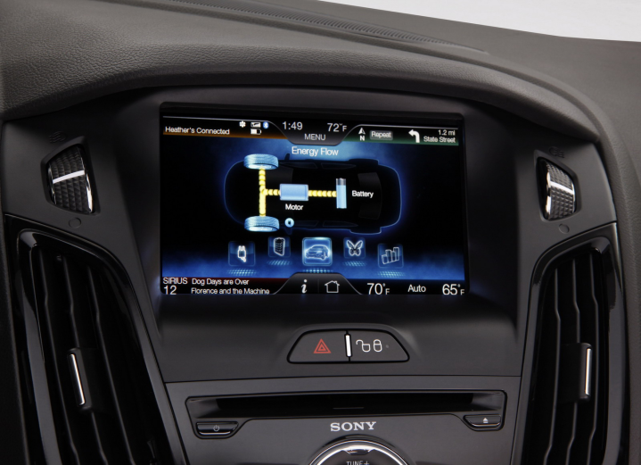 Ένα από τα καινούργια στοιχεία του ηλεκτρικού Focus είναι το σύστημα infotainment MyFord Touch. Πρόκειται για μια ευμεγέθη οθόνη αφής 4,2’’ που ενσωματώνει μια πλειάδα χρήσιμων λειτουργιών και ενδείξεων, όπως π.χ. για το ποσοστό φόρτισης των μπαταριών, την απόσταση από το κοντινότερο σημείο φόρτισης και τις οδηγίες (γραπτές και φωνητικές!) για οικονομική οδήγηση. Φυσικά, στην οθόνη προβάλλονται και πληροφορίες από τα υπόλοιπα υποσυστήματα, όπως το σύστημα πλοήγησης και ο υπολογιστής ταξιδίου.