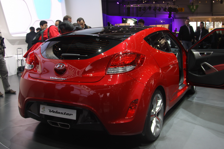 Η Hyundai παρουσίασε και στην Ευρώπη το νέο της coupe με την ονομασία Veloster. Το νέο Veloster βασίστηκε στο πρωτότυπο coupe που παρουσιάστηκε στην έκθεση της Σεούλ το 2007 και κρύβει μέσα του το πνεύμα της αρχικής ιδέας αλλά συγχρόνως αντικατοπτρίζει το νέο σχεδιαστικό τρόπο σκέψης της Hyundai. Το Veloster διαφοροποιείται από τα παραδοσιακά κουπέ μοντέλα χάρη στη μοναδική τρίθυρη διάταξη του, όπου η τρίτη πόρτα βρίσκεται στη δεξιά μεριά του αμαξώματος για εύκολη πρόσβαση στο πίσω κάθισμα. Η εξωτερική λαβή της τρίτης αυτής πόρτας βρίσκεται κρυμμένη στο αμάξωμα ώστε να εξασφαλίζεται η ελκυστική coupe αισθητική.