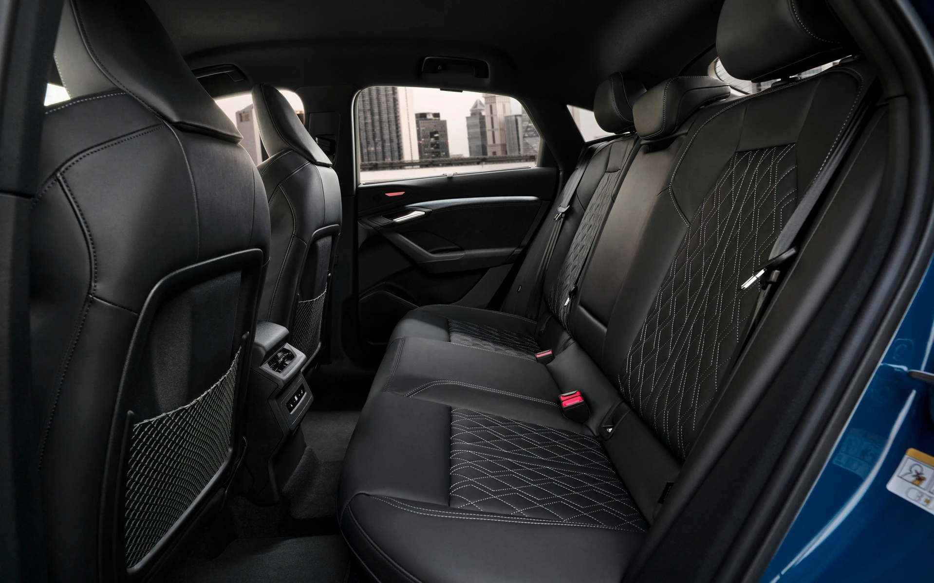 Στο εσωτερικό, το περιβάλλον είναι αρκετά γνώριμο με μόνες αλλαγές αυτές της χωροταξίας χάρη στην κεκλιμένη οροφή. Αυτό σημαίνει πως το περιβάλλον είναι απόλυτα ψηφιακό, ενώ για την κατασκευή της καμπίνας έχουν χρησιμοποιηθεί υλικά από 100% ανακυκλωμένο πολυεστέρα. Με την πρώτη ματιά τις εντυπώσεις κλέβει η μεγάλη κυρτή γυάλινη επιφάνεια μπροστά από τον οδηγό. Αυτή συνδυάζει έναν ψηφιακό πίνακα οργάνων virtual cockpit 11,9” και μια κεντρική οθόνη 14,5” που φιλοξενεί το εντελώς νέο σύστημα πολυμέσων. Είναι βασισμένο σε πλατφόρμα Android και προσφέρει τη δυνατότητα αυτόματων και απομακρυσμένων ενημερώσεων. Επίσης, ακόμη μία οθόνη 10,9’’ βρίσκουμε και μπροστά από τον συνοδηγό, κάτι που πρωτοείδαμε στο Q6 e-tron. Από πλευράς χώρων τώρα, το πορτμπαγκάζ φτάνει τα 511 λίτρα, με άλλα 64 λίτρα να είναι η χωρητικότητα του frunk. Άλλα 25 λίτρα βρίσκονται στην καμπίνα σε μορφή μικρών και πρακτικών αποθηκευτικών λύσεων.