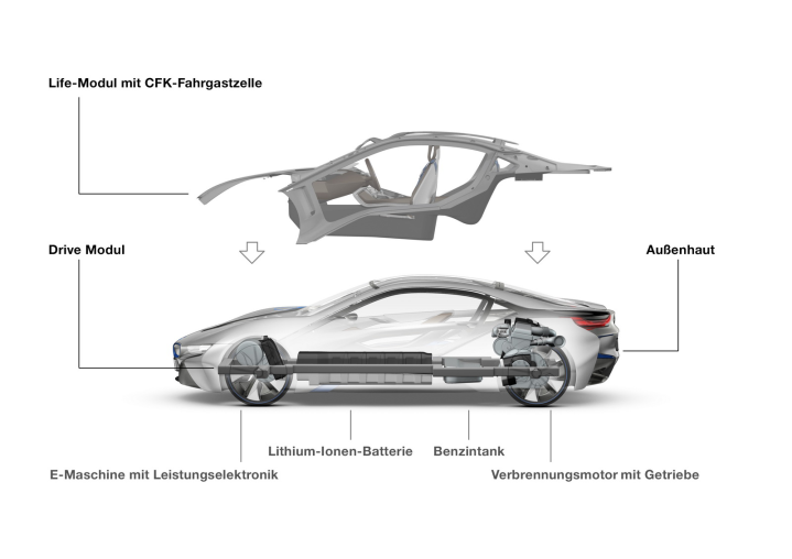 Εδώ έχουμε ένα τυπικό δείγμα υβριδικής διάταξης η οποία δεν έχει να υπερηφανεύεται μόνο για την οικονομία όσο για τις επιδόσεις που χαρίζει. Ο συμβατικός κινητήρας έχει κυβισμό 1,5 λίτρα με turbo και αποδίδει 217 ίππους οι οποίοι κινούν αποκλειστικά τους πίσω τροχούς. Στον εμπρός άξονα έχουμε τα ίδια ηλεκτρικά μέρη από το i3 όμως ο κινητήρας αποδίδει 128 ίππους και η συνολική ισχύ που φτάνει στους τροχούς είναι 345 άλογα. Όταν θερμικά και ηλεκτρικά μέσα βρίσκονται σε πάσα δύναμη το i8 επιταχύνει στα πρώτα 100km/h μόλις σε 4,6 sec επίδοση που θα ζήλευαν πολλά supercars αναγνωρισμένης αξίας. Η τελική του είναι περιορισμένη ηλεκτρονικά στα 250km/h. Μπορεί να απουσιάζουν οι θηριώδεις εξατμίσεις ή ο βρυχηθμός από μερικές εκατοντάδες ίππους όμως το συγκεκριμένο supercar μπορεί να ταξιδέψει αθόρυβα μόνο με ρεύμα για 36 χιλιόμετρα. Η επίσημη κατανάλωση που δηλώνει η BMW είναι 2,7 l/100km και οι εκπομπές CO2 είναι 66 gr/km, όμως ακόμη και για διπλάσια πραγματική κατανάλωση στα 5,5l/100km οι υποψήφιοι κάτοχοι θα πρέπει να είναι απόλυτα ικανοποιημένοι.