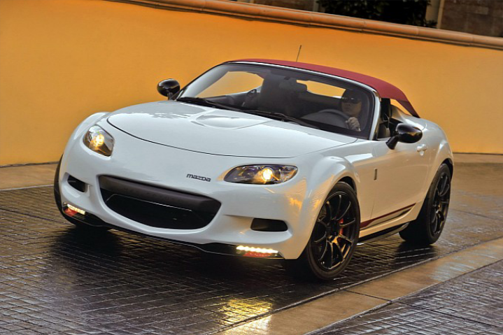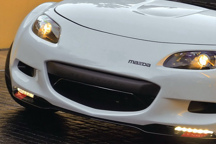 Η έκθεση SEMA που γίνεται κάθε χρόνο στο Las Vegas συγκεντρώνει όλα τα φώτα της δημοσιότητας για τον κόσμο της βελτίωσης και όχι μόνο. Κάποιοι κατασκευαστές αξιοποιούν την τεράστια επισκεψιμότητα της έκθεσης για να δείξουν μοντέλα που ταιριάζουν στο προφίλ του κοινού που την παρακολουθεί. H νέα έκδοση Mazda MX-5 Spyder αποτελεί απόδειξη αυτής της πρακτικής. Το μονοκόμματο soft top του MX-5 Spyder δημιουργεί μια τελείως διαφορετική εμφάνιση, πιο σπορ, που δένει αρμονικά με τη χρωμέ φάσα στο περίγραμμα του παρμπρίζ. Για την στήριξη της κουκούλας, υπάρχουν δύο προεκτάσεις οι οποίες βγαίνουν από το χώρο του πορτμπαγκάζ, δίνοντας ρετρό πόντους στο συνολικό αποτέλεσμα.