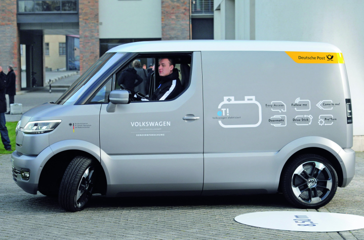Με εταιρείες όπως η Ford και η Renault να έχουν ήδη λανσάρει ηλεκτρικά van, η Volkswagen δεν θα μπορούσε να μην απαντήσει. Βέβαια, το eT! Concept είναι μόνο ένα πρωτότυπο που έχει κατασκευαστεί αποκλειστικά για έρευνα πάνω στη βιωσιμότητα των ηλεκτρικών ελαφρών φορτηγών. Διαθέτει τέσσερις ηλεκτροκινητήρες τοποθετημένους μέσα στους τροχούς, μια διάταξη που εξασφαλίζει μεγάλο χώρο φόρτωσης. Ένα ακόμη χαρακτηριστικό του eT! Concept είναι η δεξιά πόρτα που αποτελείται από δύο συρόμενα τμήματα, επιτρέποντας την εύκολη παράδοση των εμπορευμάτων. Το πιο σημαντικό όμως στοιχείο είναι η δυνατότητα αυτόνομης οδήγησης. Με το σύστημα αυτό, ο οδηγός μπορεί με τις εντολές “Come to me” και “Follow me” να καλέσει το eT! Concept είτε να έρθει κοντά του, είτε να τον ακολουθεί στον δρόμο κατά την διάρκεια των παραδόσεων (δείτε το video παρακάτω)! Μια ακόμη δυνατότητα είναι η οδήγηση μέσω του joystick που βρίσκεται στην μεριά του συνοδηγού. Και εμείς νομίζαμε πως ο ΚΙΤΤ ήταν αυτοκίνητο επιστημονικής φαντασίας…