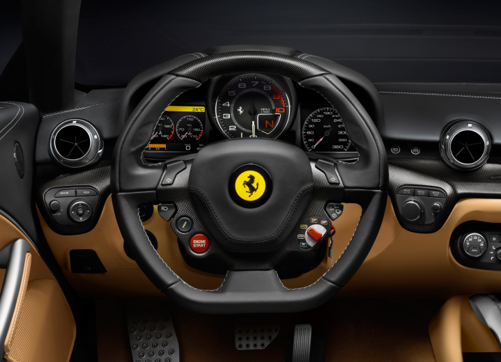 Στο εσωτερικό εκτός από πολυτέλεια η Ferrari υπόσχεται και μια πιο ευρύχωρη καμπίνα για τους δύο επιβάτες. Οι δερμάτινες επενδύσεις κλέβουν την παράσταση όπως και το Human Machine Interface το οποίο αποτελεί το δεξί χέρι οδηγού και συνεπιβάτη για τις λειτουργίες της καμπίνας (όπως στις 458 και FF).