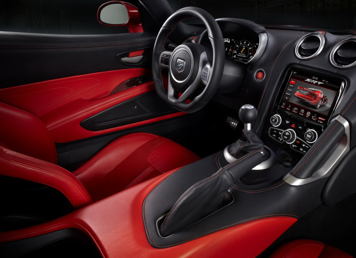 Άπειρα κυβικά, καμιά δεκαριά κύλινδροι, πληθωρική δύναμη και ροπή ικανή να ξετινάξει τα λινά των πίσω ελαστικών σε χρόνο dt: Αυτή ήταν η συνταγή για τις δύο προηγούμενες γενιές του Viper, αυτή συνεχίζει να είναι και στο καινούργιο μοντέλο. Η σχεδίαση δεν ξεφεύγει από τις γραμμές του παρελθόντος, ενώ ο V10 των 8,4 λίτρων αποδίδει 640 ίππους και 815 Nm ροπής χωρίς χρήση τούρμπο ή κομπρέσσορα – ατμοσφαιρικότατα! Πρόκειται για την υψηλότερη ροπή που αποδίδει ατμοσφαιρικός κινητήρας αυτοκινήτου στον κόσμο. Δεν είναι μόνο η δύναμη όμως. Οι αλλαγές στο πλαίσιο έχουν αυξήσει τη στιβαρότητα κατά 50%, το βάρος έχει μειωθεί σημαντικά, η αναλογία κιλών ανά ίππο πλησιάζει αυτή των Bugatti Veyron και Ferrari F12, τα τεράστια P Zero φάρδους 355 πίσω και 295 μπροστά έχουν σχεδιαστεί από την Pirelli ειδικά για το Viper, τετραπίστονες δαγκάνες και δίσκοι της Brembo έχουν αναλάβει το φρενάρισμα, ενώ για πρώτη φορά υπάρχουν συστήματα ελέγχου της πρόσφυσης και της ευστάθειας – μην ανησυχείτε, απενεργοποιούνται, όπως μας καθησύχασαν από την SRT. Α, ναι, το άλλο το ξεχάσαμε: τα σήματα της Dodge, γιοκ. Το νέο Viper ακούει στο όνομα SRT (Street and Racing Technology), η οποία είναι για την Chrysler ότι το M division για τη BMW. Η κλασική συνταγή Viper άλλαξε στο εσωτερικό, όπου η ποιότητα και η πολυτέλεια αναβαθμίστηκαν σημαντικά. Εκτός από τα καθίσματα της Sabelt, έχουμε έγχρωμη οθόνη LCD 7’’ στον πίνακα οργάνων, άλλη μία 8,4’’ στην κεντρική κονσόλα με το σύστημα πολυμέσων Uconnect της Chrysler, ηχοσύστημα by Harmon Kardon και… για πρώτη φορά, cruise control. Πως είπατε; Ιεροσυλία;