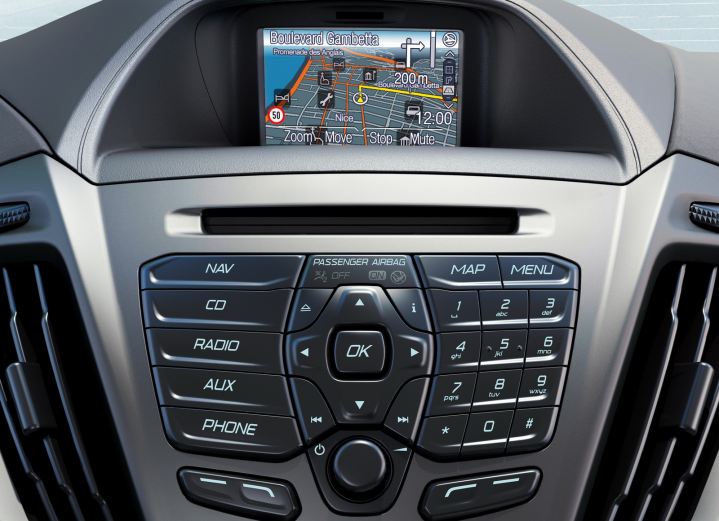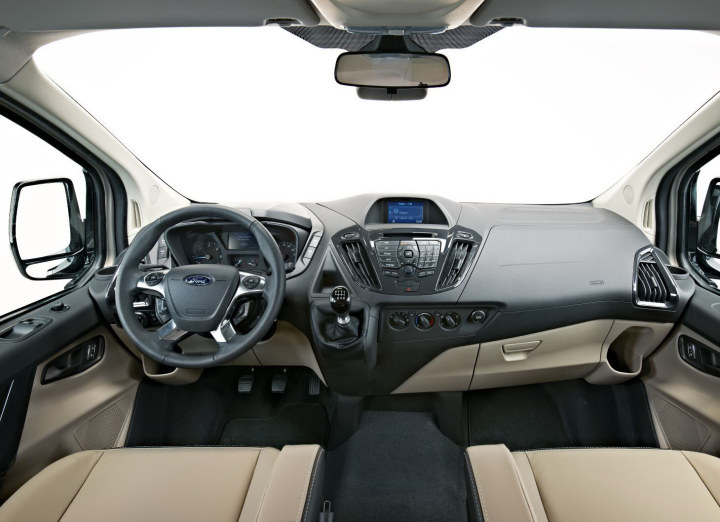 Το επίπεδο σχεδίασης και πρακτικότητας είναι ακόμη καλύτερο στο εσωτερικό. Τιμόνι, πίνακας οργάνων και κεντρική κονσόλα θυμίζουν Fiesta και Focus και σε συνδυασμό με την καλοσχεδιασμένη θέση οδήγησης συμβάλλουν στην αίσθηση επιβατικού αυτοκινήτου. Ακόμη και η ποιότητα ξεφεύγει από τα δεδομένα των van. Τα υλικά σε κάθε σημείο της καμπίνας είναι προσεγμένης ποιότητας και δείχνουν ανθεκτικά στο χρόνο και τη σκληρή χρήση. Μάλιστα, ειδικά στο ταμπλό, έπρεπε να αγγίξω το πλαστικό για να διαπιστώσω πως είναι σκληρό και όχι μαλακό όπως έδειχνε στο μάτι! Πίσω από το τιμόνι, ο οδηγός απολαμβάνει μία μεγάλη γκάμα τεχνολογιών υποστήριξης που συνοδεύουν τα τελευταία επιβατικά μοντέλα της Ford: τέτοιες τεχνολογίες είναι το σύστημα συνδεσιμότητας SYNC με φωνητική ενεργοποίηση, το οποίο περιλαμβάνει τη βραβευμένη λειτουργία Emergency Assistance, καθώς και συστήματα όπως: