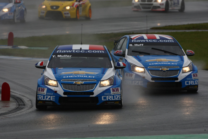 Στον γερμανικό αγώνα του Oschersleben για το World Touring Car Championship, η υπεροχή των Chevrolet συνεχίστηκε στον πρώτο γύρο. Ο Yvan Muller, ο οποίος ξεκινούσε από την pole position αντιστάθηκε στην επίθεση του team mate του Rob Huff και εξασφάλισε στο νήμα άλλη μια νίκη για το πρωτάθλημα. Για άλλο έναν αγώνα το εξαιρετικά ανταγωνιστικό Chevrolet Cruze, έκανε το 1-2 στην κατάταξη. Παράλληλα ο Muller πλησίασε ακόμη περισσότερο τον Huff στην βαθμολογία των οδηγών. Στην τρίτη θέση του πρώτου αγώνα τερμάτισε ο Robert Taquini με το Seat Leon (Sunred) ο οποίος είχε ένα ήσυχο αγώνα, αφού προσπέρασε τον Tom Coronel με την ROAL BMW.