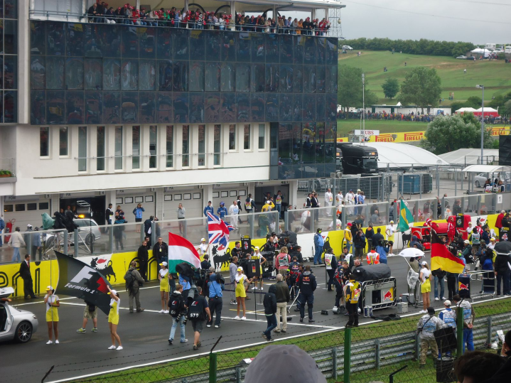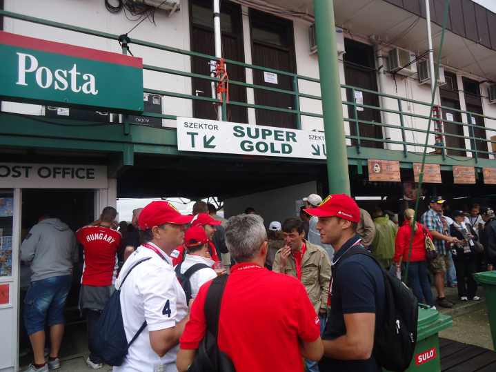 Πίσω από τις κερκίδες υπήρχαν τα κλασσικά περίπτερα που πουλούσαν είδη για F1 αλλά και αυτά που πουλούσαν γρήγορο φαγητό. Μπορεί να υπήρχε η ένδειξη “Greek Gyros”, αλλά όσοι το δοκίμασαν είπαν «μακριά». Μπήκα στην κερκίδα και περίμενα να ακούσω τα μονοθέσια να βάζουν μπρος τις μηχανές τους, όπως και έγινε. Ο καιρός ήταν περίεργος για τέλος Ιουλίου. Δροσερός και βροχερός. Ευτυχώς όμως δεν είχαμε εκκίνηση πίσω από αυτοκίνητο ασφαλείας. Από τα αξιοσημείωτα που δεν βλέπει κάποιος από την τηλεόραση είναι ο αγώνας δρόμου που κάνουν οι μηχανικοί για να επιστρέψουν από την πίστα στα γκαράζ. Όταν τα μονοθέσια φεύγουν για τον γύρο σχηματισμού, οι μηχανικοί πρέπει να γυρίσουν πίσω στα γκαράζ.