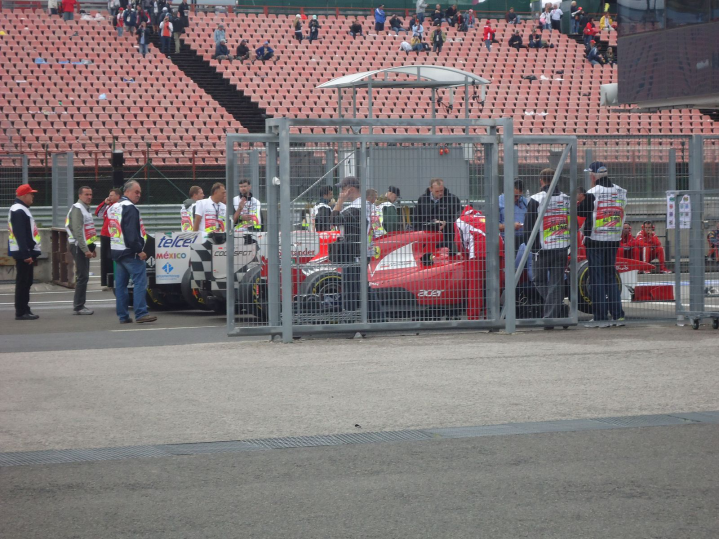 Είδα από μακρυά να πηγαίνουν μονοθέσια στο parc ferme και αποφάσισα να πάω προς εκείνη την κατεύθυνση για να δω από κοντά τις τεχνικές λύσεις και να τραβήξω και φωτογραφίες. Ο άνθρωπος που ήταν στο security μου επέτρεπε να φωτογραφίσω τα μονοθέσια, επειδή η φωτογραφική μου δεν ήταν επαγγελματική. Ήμουν τυχερός γιατί μπόρεσα να δω από πολύ κοντά την McLaren του Hamilton. Δυστυχώς τα άλλα μονοθέσια των κορυφαίων ομάδων περνούσαν από έλεγχο και ακόμα και να ερχόντουσαν θα ήταν μακριά για να παρατηρήσω κάποια πράγματα που ήθελα. Είδα όμως την Williams και την Scuderia Toro Rosso, καθώς και τις Virgin.