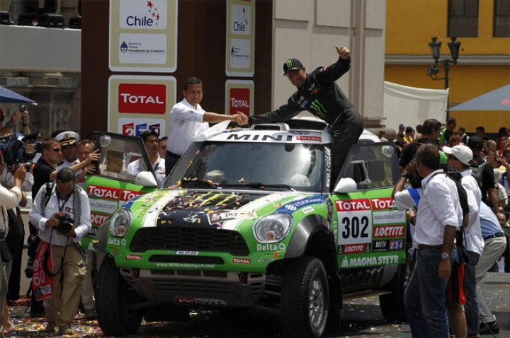 Την 10η συνολική και 4η νίκη με αυτοκίνητο πέτυχε ο Stéphane Peterhansel  στο ράλλυ Dakar. Ο 47χρονος Γάλλος, που έχει κερδίσει άλλες 6 φορές με μοτοσυκλέτα από το 1988 που έτρεξε για πρώτη φορά, ανέβηκε και πάλι στην πρώτη θέση του βάθρου μετά το 2007, δίνοντας στη Mini την πρώτη της νίκη στο Dakar. Πίσω του τερμάτισε ο Καταλανός  Joan "Nani" Roma με άλλο ένα Mini, κάνοντας το 1-2 για την ομάδα X-Raid. Τα Mini (4 συνολικά) έδειξαν από την αρχή του αγώνα την ταχύτητα και τη σταθερότητα στην απόδοσή τους, κερδίζοντας συνολικά 8 από τις 13 ειδικές. Την τριάδα έκλεισε ο Noτιοαφρικανός Giniel de Villiers με Toyota Hilux, εκπλήσσοντας με την επίδοσή του. Στις μοτοσυκλέτες τώρα, νικητής ήταν (για 4η φορά στην καριέρα του) ο Cyril Despres (ΚΤΜ). Τον ακολούθησε στη 2η θέση ο Marc Coma (ΚΤΜ), ο μόνος που κόντραρε τον Despres για τη νίκη. Τρίτος τερμάτισε ο Hélder Rodrigues (Yamaha WRF 450). Έκπληξη είχαμε στην κατάταξη των φορτηγών, στην πρώτη θέση της οποίας, για πρώτη φορά μετά από χρόνια, δεν φιγουράριζε κάποιο Kamaz. Τη νίκη πήρε ο Gerard de Rooy με Iveco, ενώ κι εδώ είχαμε άλλο ένα 1-2, με το Iveco του Hans Stacey να τερματίζει δεύτερο, εμπρός από το Kamaz του Artur Ardavichus. Στα quads, τέλος, τα αδέρφια Patronelli έκαναν το 1-2, με τον Alejandro (Yamaha) στην πρώτη και τον Marcos (Yamaha) στη δεύτερη θέση. Την κυριαρχία της Yamaha την κατηγορία επισφράγισε ο Tomás Maffei,  τερματίζοντας τρίτος.