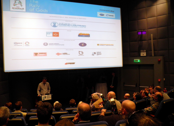 Συνέντευξη Τύπου για το Ράλλυ Ακρόπολις 2012 που θα διεξαχθεί στις 24-27 Μαΐου, δόθηκε την Παρασκευή 30/3 στο Ελληνικό Μουσείο Αυτοκινήτου. Την εκδήλωση τίμησαν με την παρουσία τους ο Υπουργός Πολιτισμού και Τουρισμού, κ. Παύλος Γερουλάνος, ο Αντιπεριφερειάρχης Ενέργειας Βιομηχανίας και Πολιτισμού Πελοποννήσου, κ. Απόστολος Παπαφωτίου, ο Δήμαρχος Λουτρακίου-Αγ. Θεοδώρων, κ. Κώστας Λογοθέτης και η πρόεδρος του Οργανισμού Πολιτισμού Αθλητισμού Νεολαίας (ΟΠΑΝΔΑ) Δήμου Αθηναίων, κ. Παναγιώτα Ψαράκη. Όπως επεσήμανε ο υπουργός Πολιτισμού και Τουρισμού κατά το χαιρετισμό του, το αρμόδιο υπουργείο θα σταθεί και φέτος δίπλα στο Ράλλυ Ακρόπολις μέσω χορηγίας που θα προέλθει από τον ΟΠΑΠ, λέγοντας χαρακτηριστικά πως “Αν κάπου βλέπουμε μια αξία και μπορούμε να επενδύσουμε σ' αυτό, το κάνουμε”. Μόνο που θα πρέπει να πει κάποιος στον υπουργό πως το Ράλλυ Ακρόπολις ΕΙΝΑΙ στο καλαντάρι του Παγκόσμιου Πρωταθλήματος Ράλλυ, οπότε δεν τίθεται θέμα επιστροφής του, όπως ανέφερε.